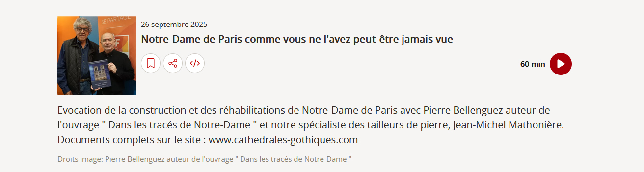 Je recommande... Le superbe ouvrage Les cathédrales retracées pour tous les passionnés d'architecture gothique. Dans son livre, l'auteur Pierre Bellenguez nous dévoile le message caché derrière les plans des grandes cathédrales gothiques. À consommer sans modération !
