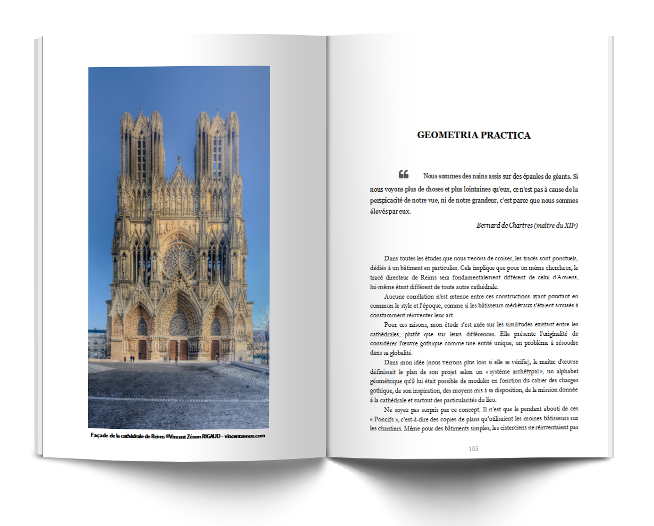 Par la comparaison de nombreux monuments, il s’attache à retrouver les règles oubliées qui gouvernent les proportions des grandes cathédrales gothiques.